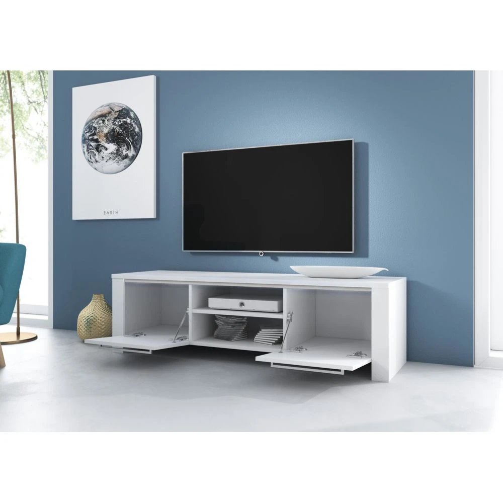 Points forts Vivaldi VIVALDI Meuble TV – MANHATTAN – 140 cm – noir mat / noir brillant – style moderne