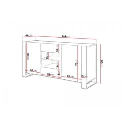 Le buffet Willow est Ă©quipĂ© d’une niche centrale sans porte mais avec une Ă©tagère, de deux armoires latĂ©rales très spacieuses qui s’ouvrent sur les cĂ´tĂ©s grâce au système moderne push-to-open , ainsi que de deux tiroirs. Les deux armoires latĂ©rales disposent chacune d’une Ă©tagère, afin de dĂ©multiplier les zones de rangement. Ce buffet dans lequel vous pourrez ranger votre vaisselle, vos livres, magazines, documents, etc. vous permettra ainsi d’optimiser l’espace dans votre pièce !